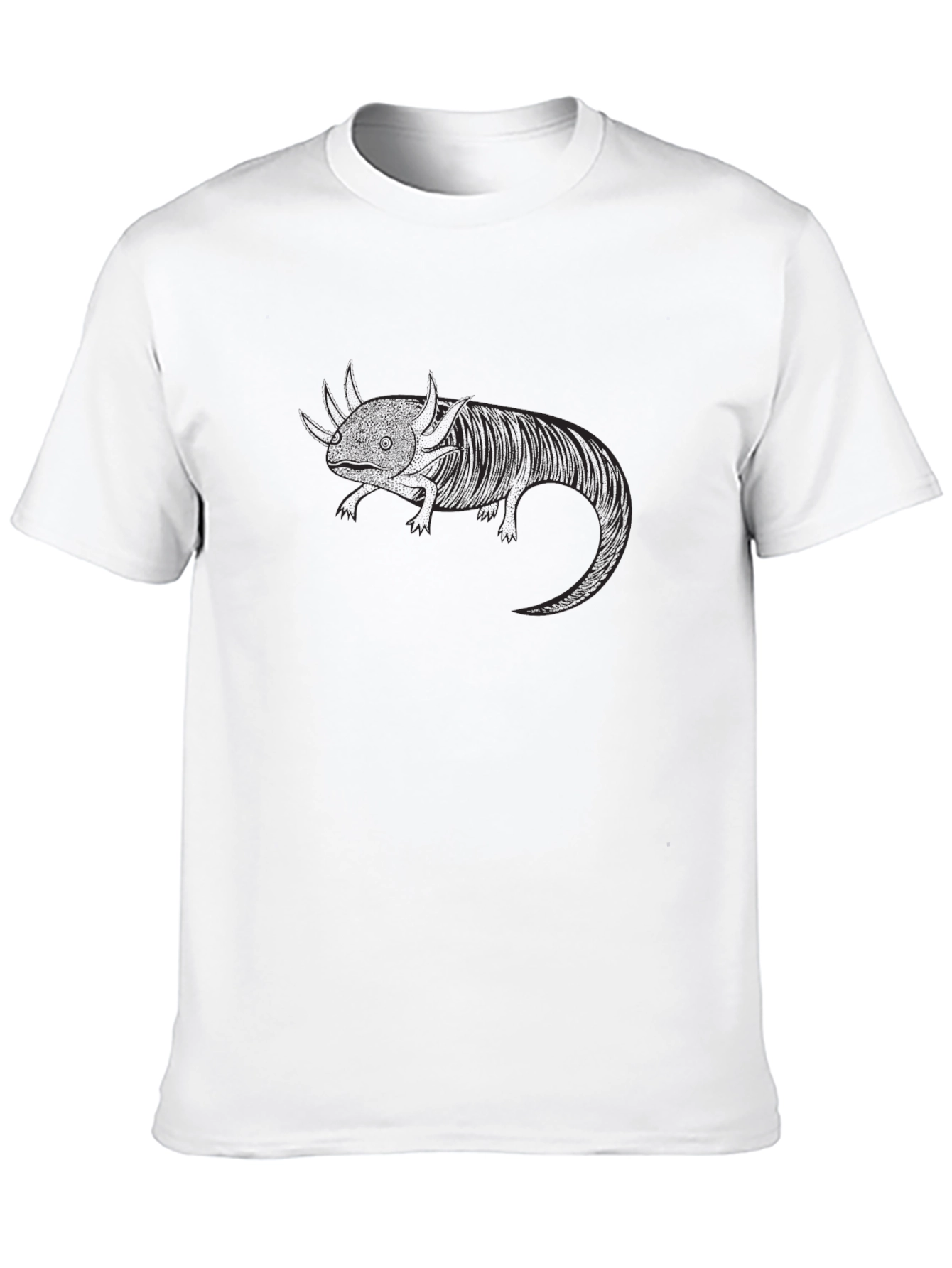 Show off your love for the unique axolotl with this stylish graphic tee. The shirt features a detailed line art illustration of an axolotl on a solid black background. Made from a comfortable fabric, this unisex t-shirt offers a relaxed fit, perfect for casual wear. Its simple yet eye-catching design makes it a great conversation starter and a fun addition to any wardrobe. Ideal for everyday use, pair it with jeans or shorts for a laid-back look. This graphic tee is a great way to express your love for animals with a unique style!