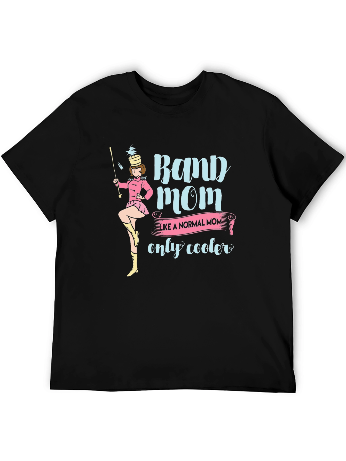 Show your band mom pride with this fun and stylish black t-shirt! Featuring a vibrant graphic of a majorette and bold text that reads "Band Mom Like a Normal Mom Only Cooler," this tee is perfect for any supportive mom. The design pops against the dark background, making it a standout piece. Made from a comfortable material, this shirt is great for game days, rehearsals, or casual wear. Let everyone know you're a proud band mom in the coolest way possible!
