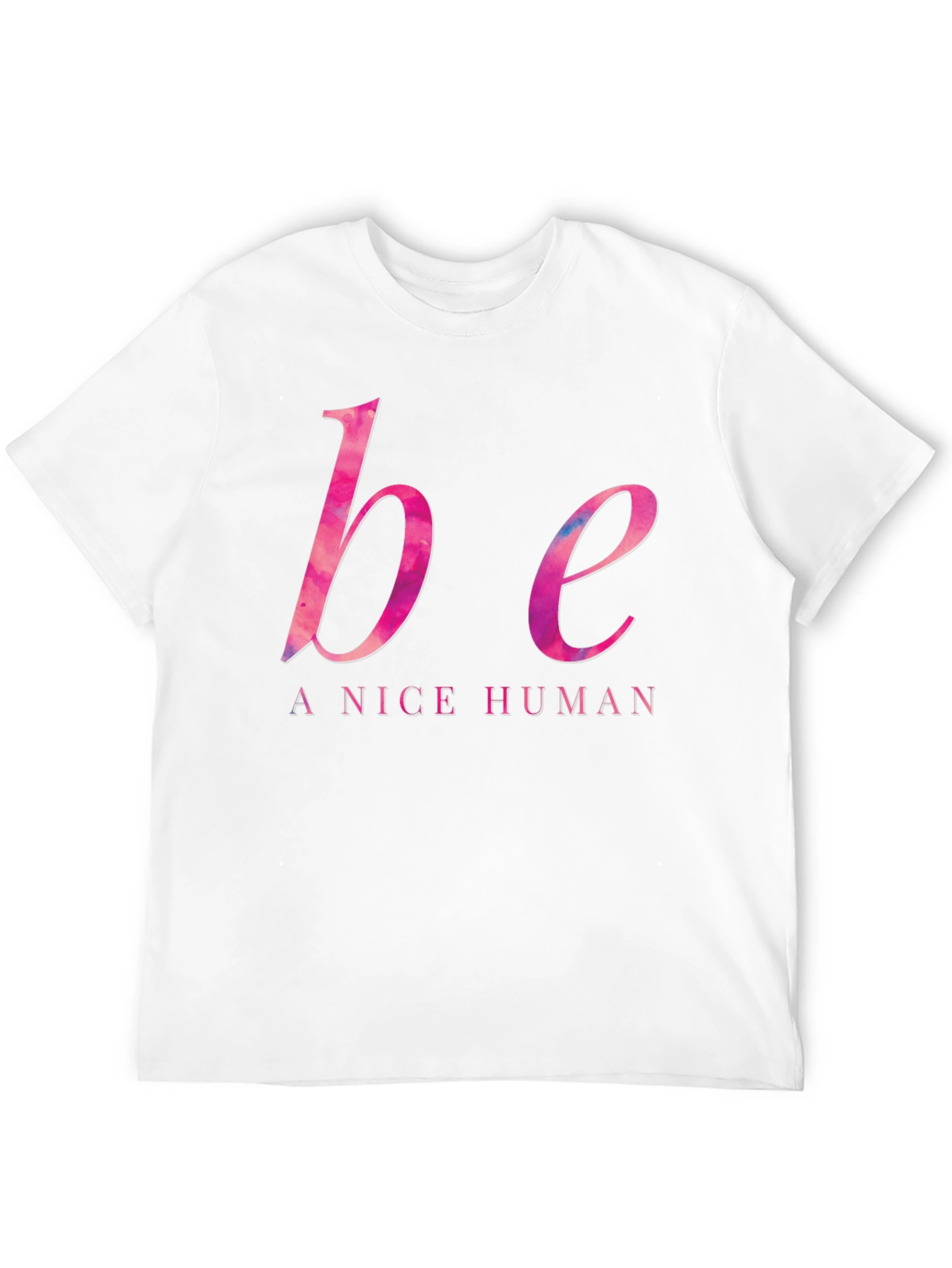 Spread positivity with this stylish black "Be A Nice Human" t-shirt. The design features the words "be" and "a nice human" in a vibrant pink watercolor font, creating a trendy and eye-catching look. This tee is perfect for everyday wear, casual outings, or as a thoughtful gift. Made from comfortable materials, it's ideal for expressing your values and promoting kindness wherever you go. Its minimalist design makes it versatile and easy to pair with jeans, shorts, or skirts. Wear it to inspire others and make a statement with this feel-good shirt.