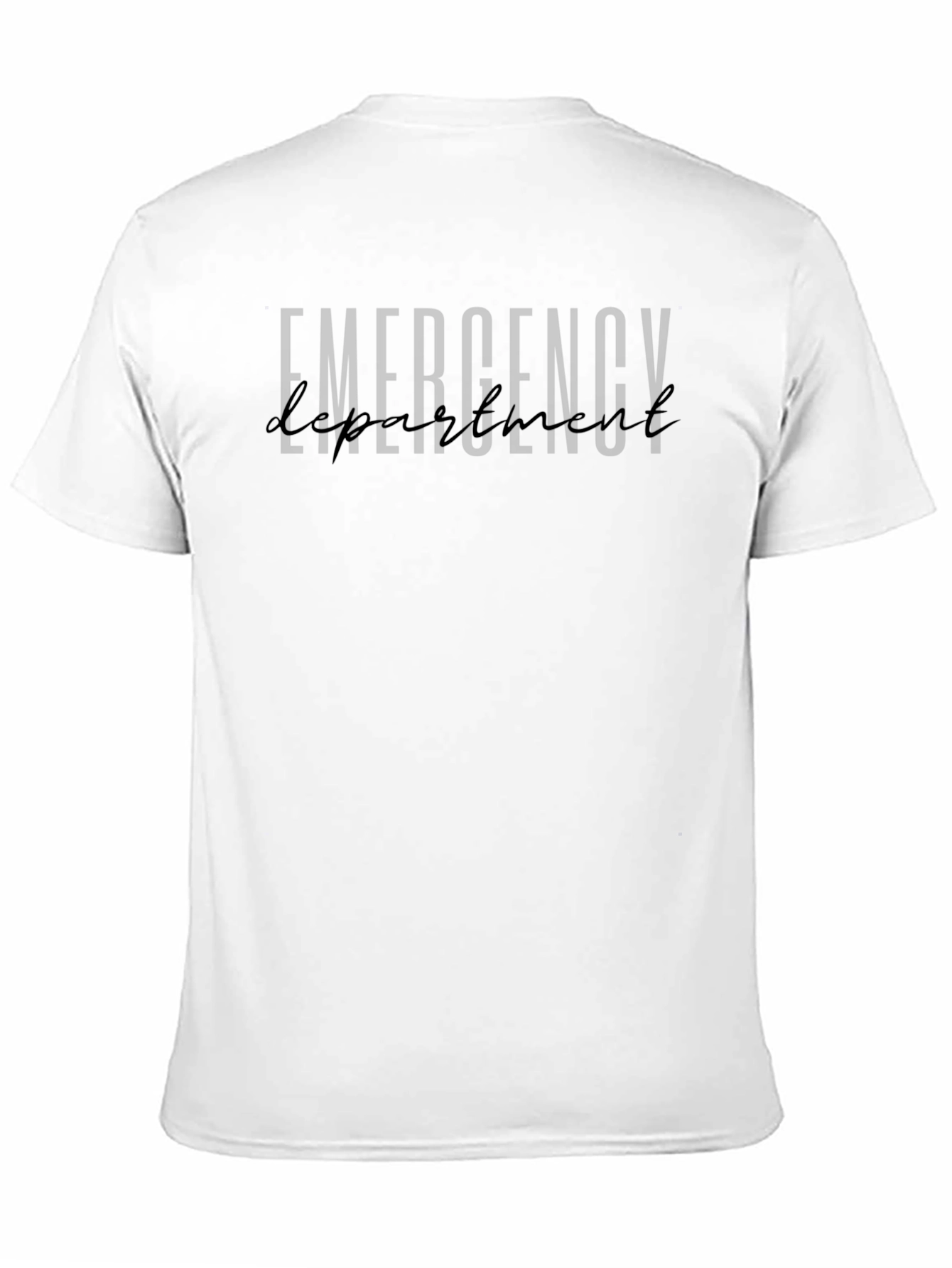 This classic black t-shirt features a subtle "Emergency Department" graphic, making it a unique and understated choice. The shirt appears to be made from a soft, comfortable material, perfect for everyday wear. Its minimalist design allows for versatile styling - wear it casually with jeans or dress it up with a jacket. This t-shirt is a great way to show your support for healthcare professionals or simply add a touch of individuality to your wardrobe. Whether you're running errands or relaxing at home, this shirt offers both style and comfort.