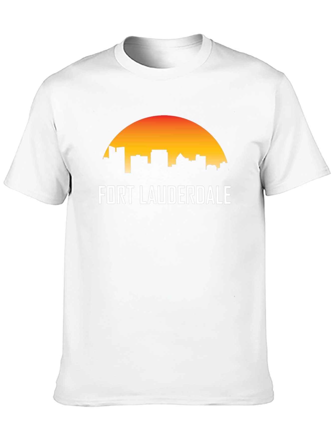 Show your love for Fort Lauderdale with this stylish graphic t-shirt. This black tee features a vibrant skyline silhouette against a sunset backdrop, making it a standout piece. The design includes the city name in bold, modern lettering. Made from a soft, comfortable fabric, this shirt is perfect for casual wear, travel, or as a souvenir. It's a great way to represent your favorite city in style. Whether you're a local or a visitor, this Fort Lauderdale tee is a must-have addition to your wardrobe.