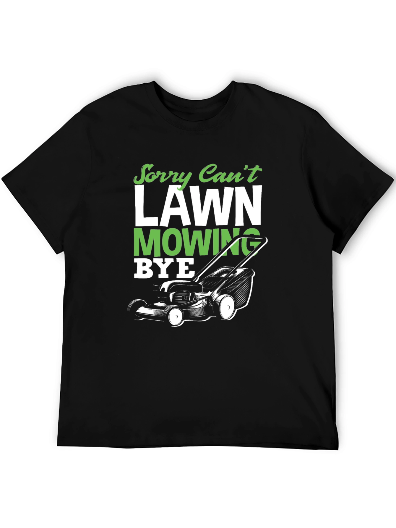 Show off your love of yard work with this humorous t-shirt. This black tee features a lawnmower graphic and playful text that reads "Sorry Can't Lawn Mowing Bye" in green and white. The clever design will resonate with anyone who takes pride in their lawn. Made from a comfortable material, this shirt is perfect for casual wear, gardening days, or weekend errands. It's sure to be a conversation starter and a fun addition to any wardrobe. Get yours today and let everyone know your lawn comes first!
