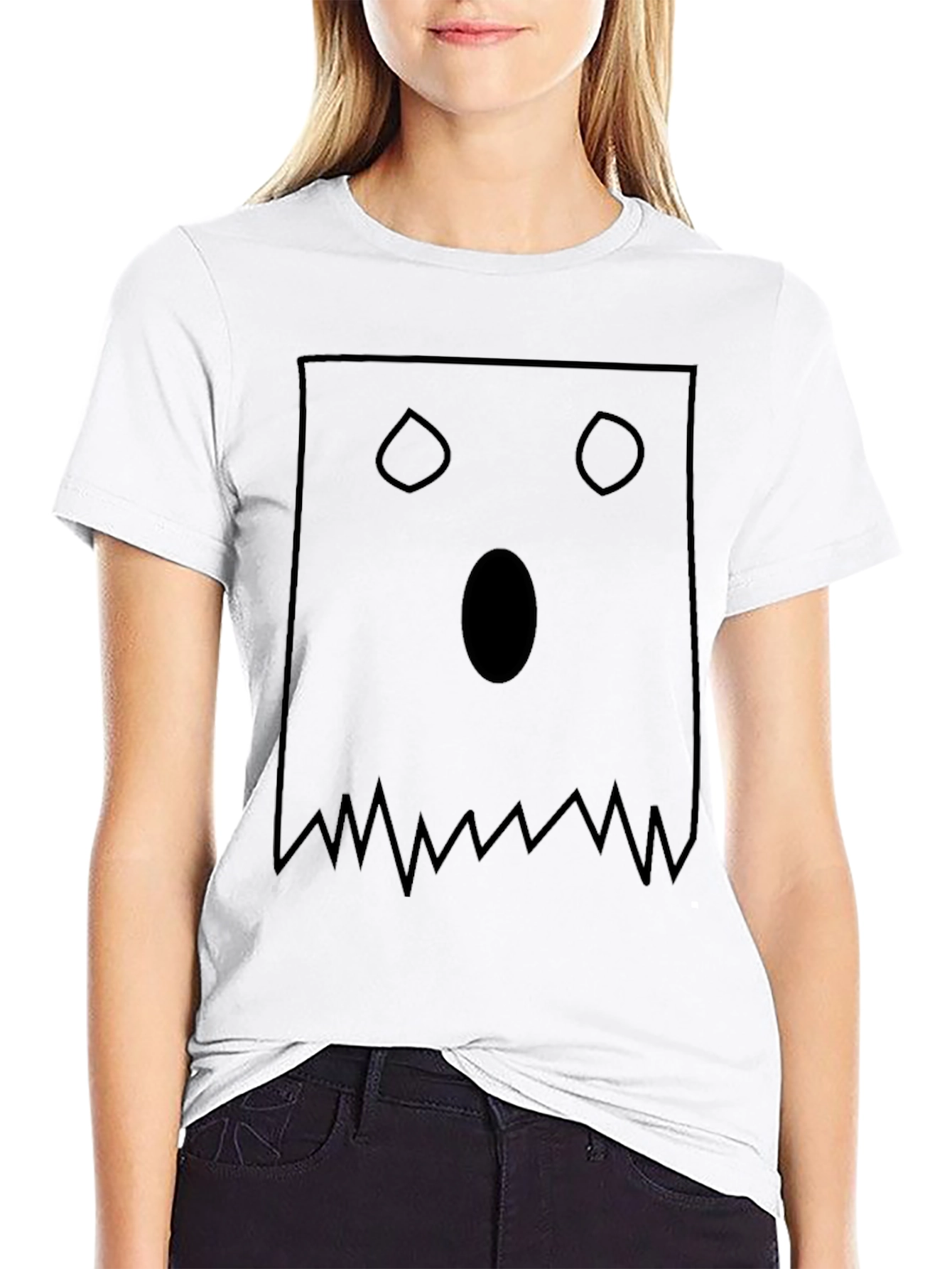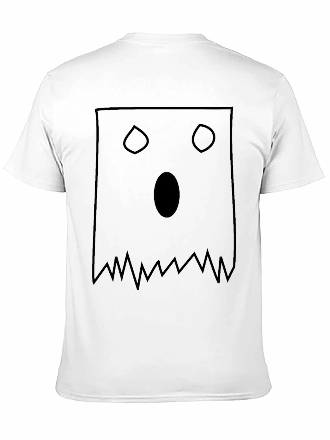 Embrace the Halloween spirit with this unique and spooky ghost face t-shirt. Made from a comfortable, dark-colored fabric, this tee features a bold, minimalist design of a surprised ghost face. The graphic consists of a square outline, two rounded eyes, an oval mouth, and a jagged bottom edge, creating a playful yet eerie visual. Perfect for Halloween parties, casual wear, or as a fun gift, this t-shirt is sure to turn heads and spark conversations. Get ready to showcase your love for the spooky season with this one-of-a-kind tee!