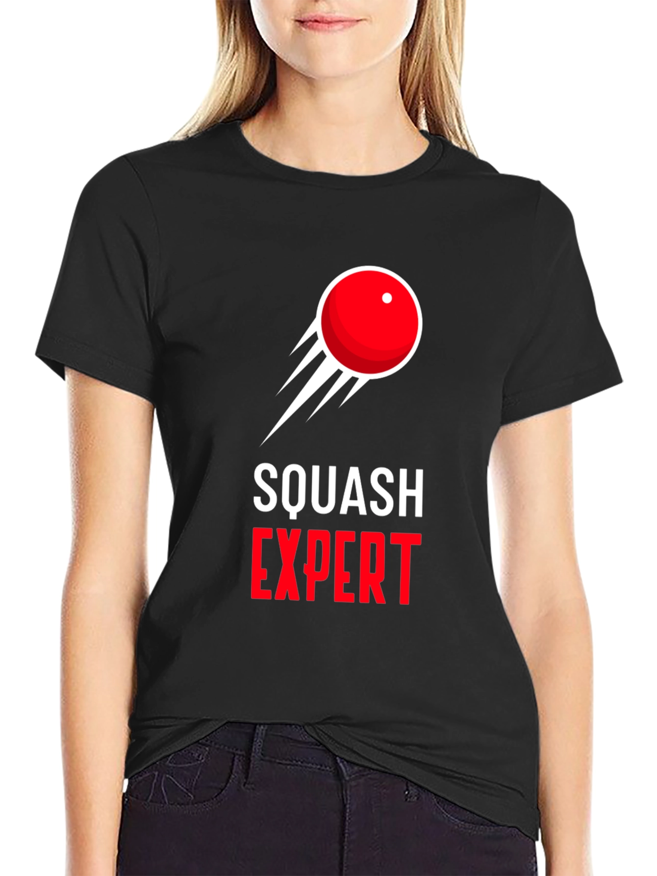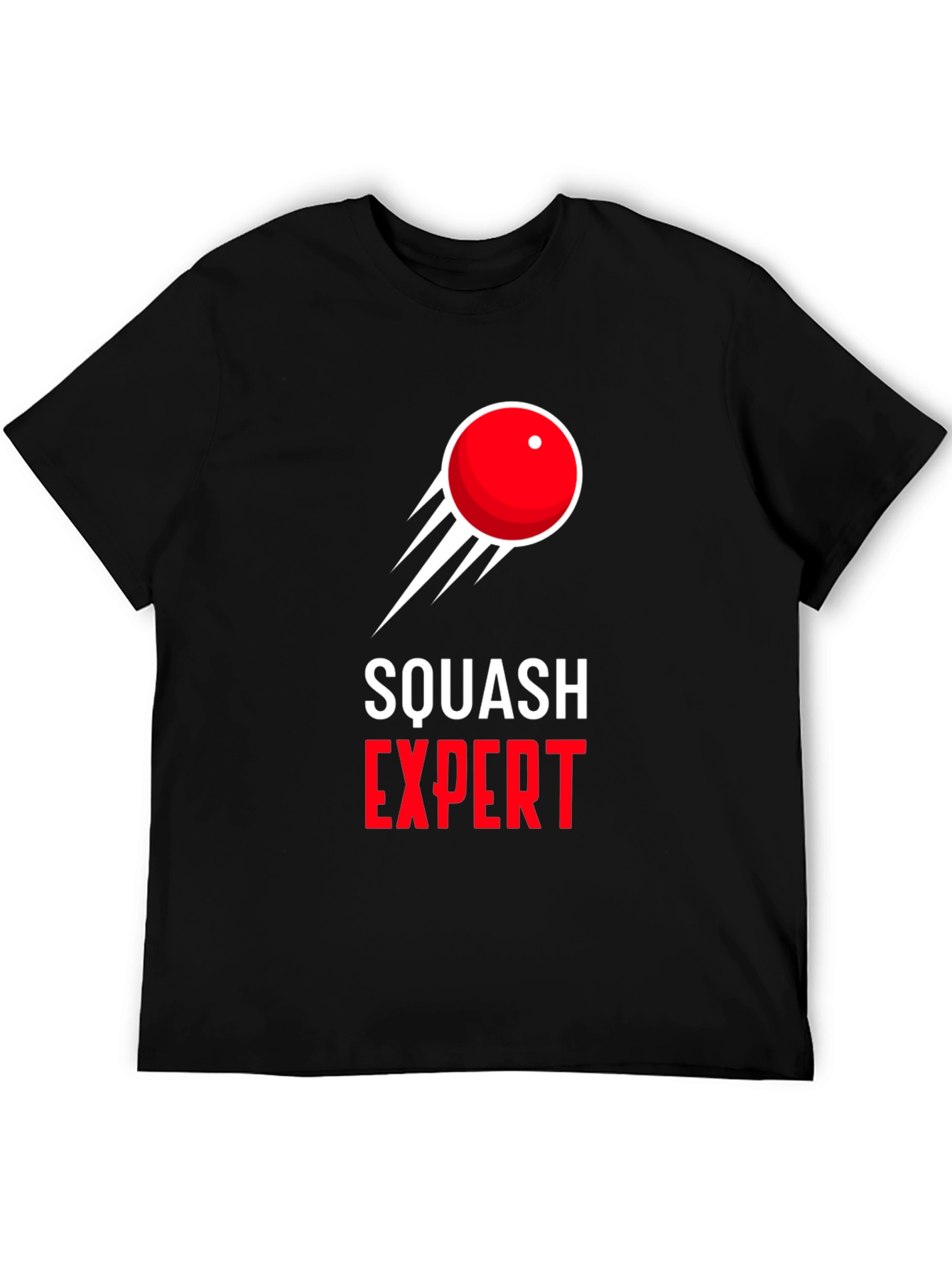 Showcase your love for squash with this stylish black t-shirt. The design features a bold graphic of a red squash ball in motion above the words "SQUASH EXPERT" in a contrasting red and white font. This shirt is made from what appears to be soft, comfortable cotton. Perfect for casual wear, hitting the courts, or representing your favorite sport. A great gift for any squash enthusiast. Get yours today and let everyone know you're a squash expert!