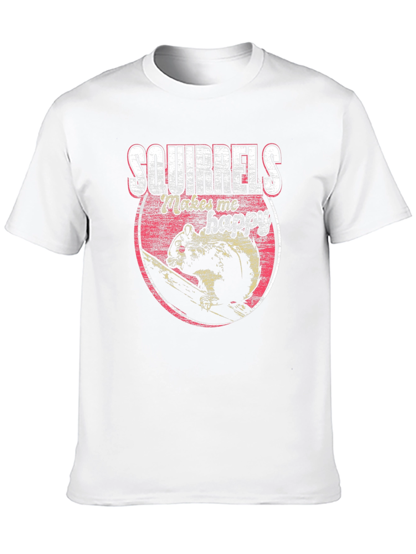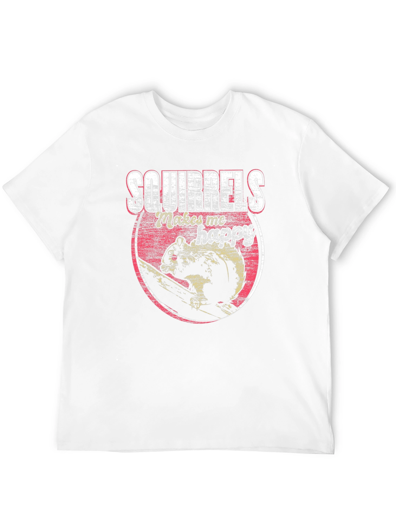 Show your love for squirrels with this unique graphic t-shirt! This eye-catching black tee features a distressed-style print of a squirrel inside a circle, accompanied by the text "SQUIRRELS Makes me happy". The shirt is made from a comfortable, breathable fabric, perfect for everyday wear. The classic fit makes it a versatile addition to any wardrobe. Whether you're a nature enthusiast or simply appreciate quirky designs, this shirt is a must-have. Wear it casually with jeans, shorts, or layer it under a jacket for a cool, effortless look. Makes a great gift for squirrel lovers!