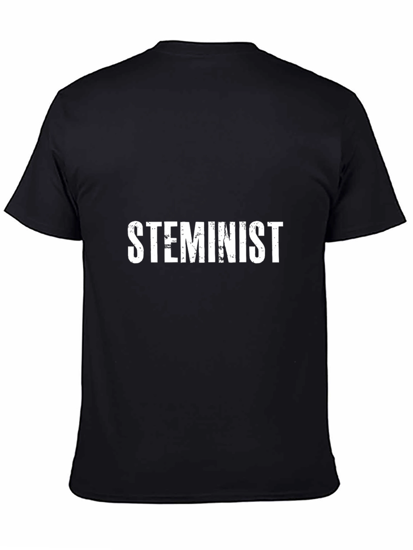 Show your support for women in STEM with this striking black t-shirt. The bold, white "STEMinist" graphic makes a clear statement. This classic fit tee is made from what appears to be soft, breathable cotton, ensuring all-day comfort and durability. It's a perfect choice for science enthusiasts, feminists, students, teachers, or anyone who believes in empowering women in STEM fields. Wear it to science fairs, rallies, lectures, or just around town to spark conversations and inspire others. Let your passion for science and equality shine with this eye-catching tee!