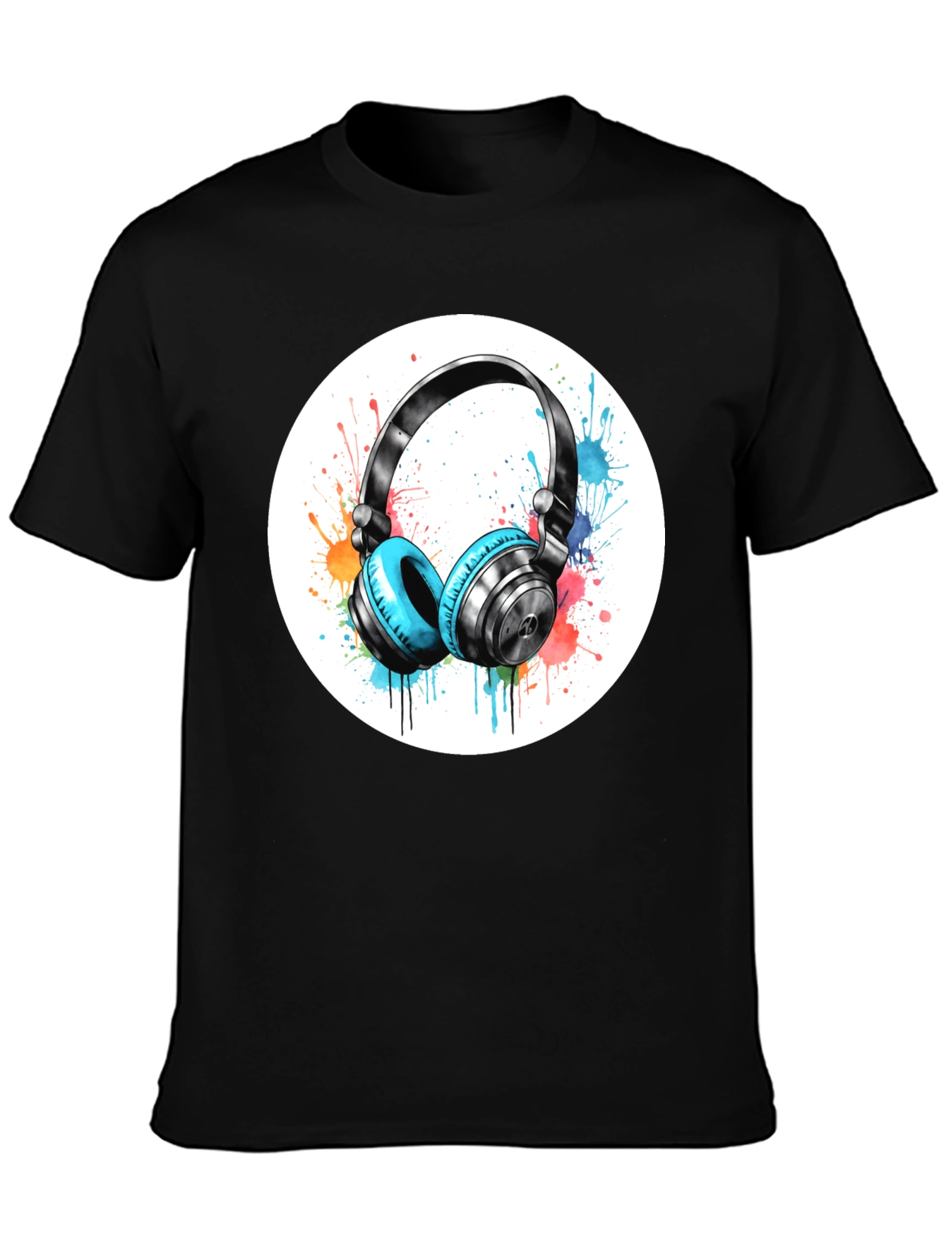 Rock your passion for music with this eye-catching graphic tee! Featuring a vibrant, artistic print of headphones surrounded by a splash of watercolor-style accents, this shirt is a perfect blend of style and comfort. The design pops against the classic black background, making it a standout piece in any wardrobe. Made from a soft, breathable fabric, this tee offers all-day comfort. Ideal for casual outings, concerts, or just lounging at home, this shirt is a must-have for music enthusiasts. Show off your love for tunes with this unique and trendy tee!