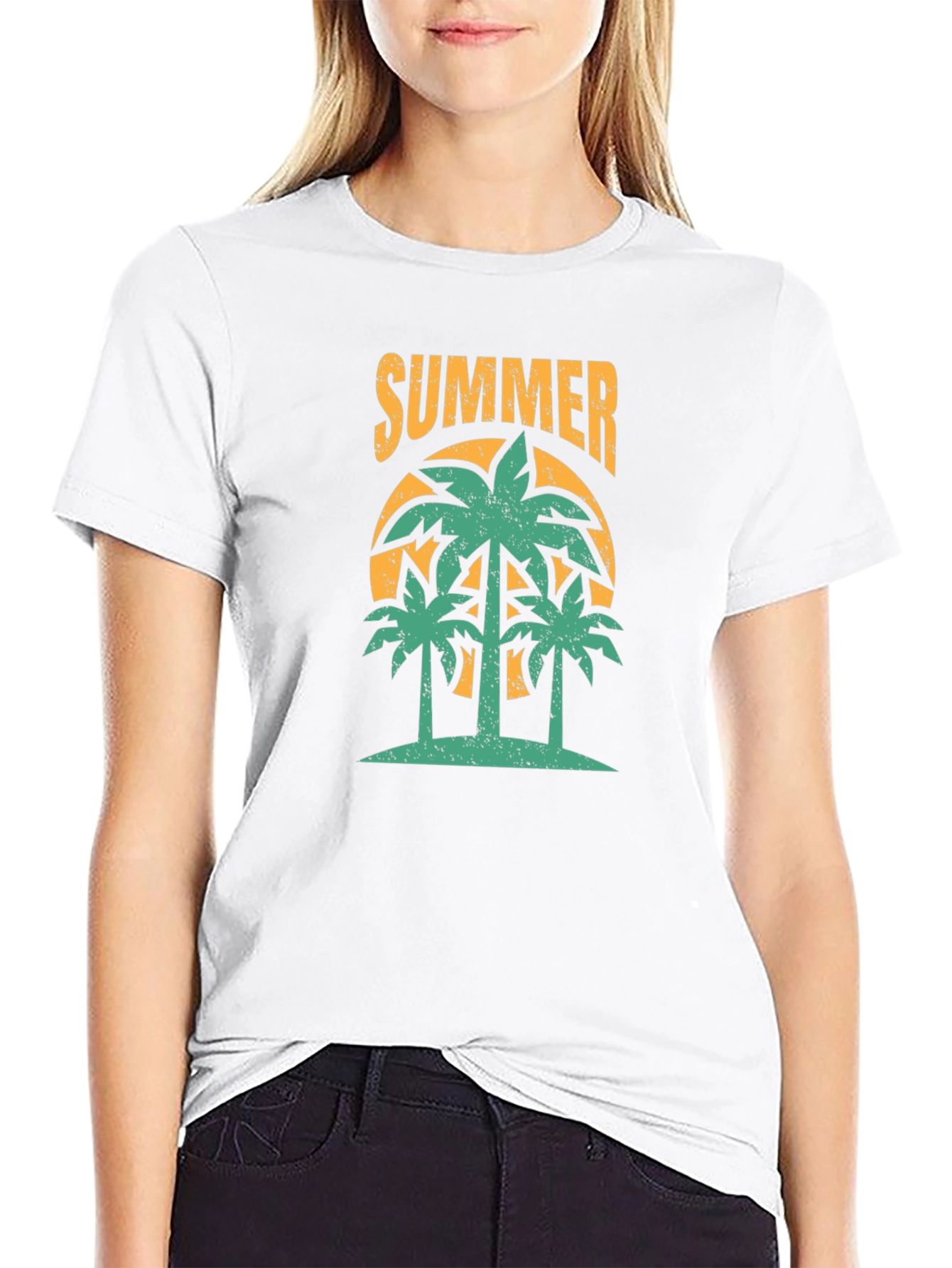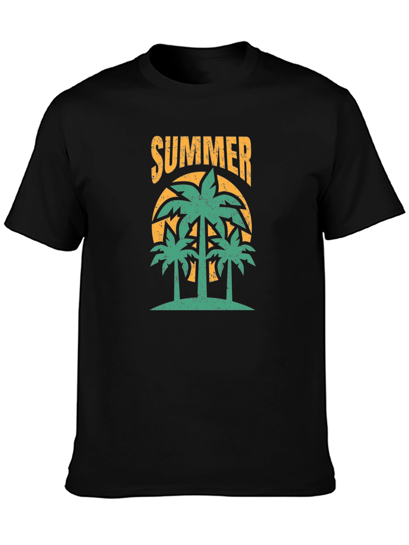 Embrace the sunny vibes with this stylish black t-shirt featuring a vibrant "SUMMER" design. The eye-catching graphic showcases a retro sunset with palm trees, evoking a sense of tropical paradise. Made from comfortable, breathable fabric, this tee is perfect for casual wear, beach outings, or adding a touch of summer to any outfit. The design is bold and unique, making it a standout piece in any wardrobe. Pair it with shorts, jeans, or a skirt for a relaxed and fashionable look. Ideal for summer lovers and vacationers, this shirt is a must-have for those warm weather days.