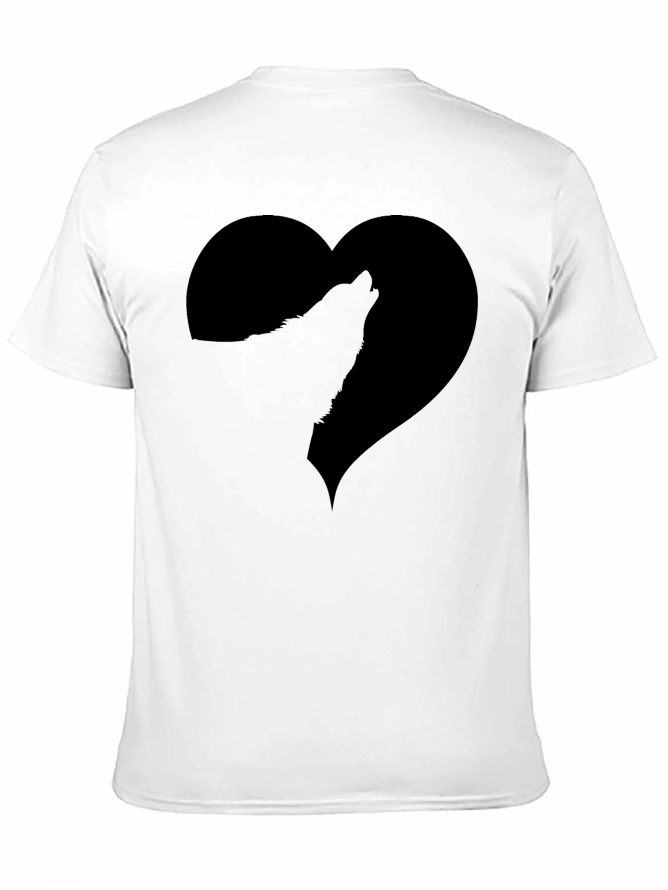 Show your love for wolves with this stylish black t-shirt. This eye-catching tee features a bold graphic of a howling wolf silhouette set within a heart shape. Crafted from a comfortable-looking, soft fabric, this shirt is perfect for everyday wear. The classic fit makes it a versatile addition to any wardrobe. Wear it casually with jeans or dress it up with a jacket. This unique design is sure to spark conversation and display your love for wildlife.
