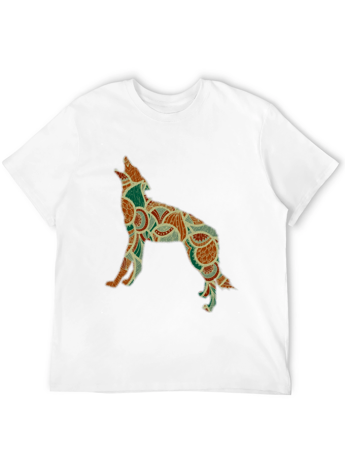 This black t-shirt features a unique and eye-catching wolf silhouette graphic. The wolf design is filled with intricate patterns and a blend of earthy colors like browns, greens, and oranges, giving it a distinct artistic style. Made from comfortable, breathable fabric, this tee is perfect for casual wear, outdoor adventures, or simply expressing your love for wildlife. Its classic fit makes it a versatile addition to any wardrobe. Stand out with this stylish and nature-inspired t-shirt.