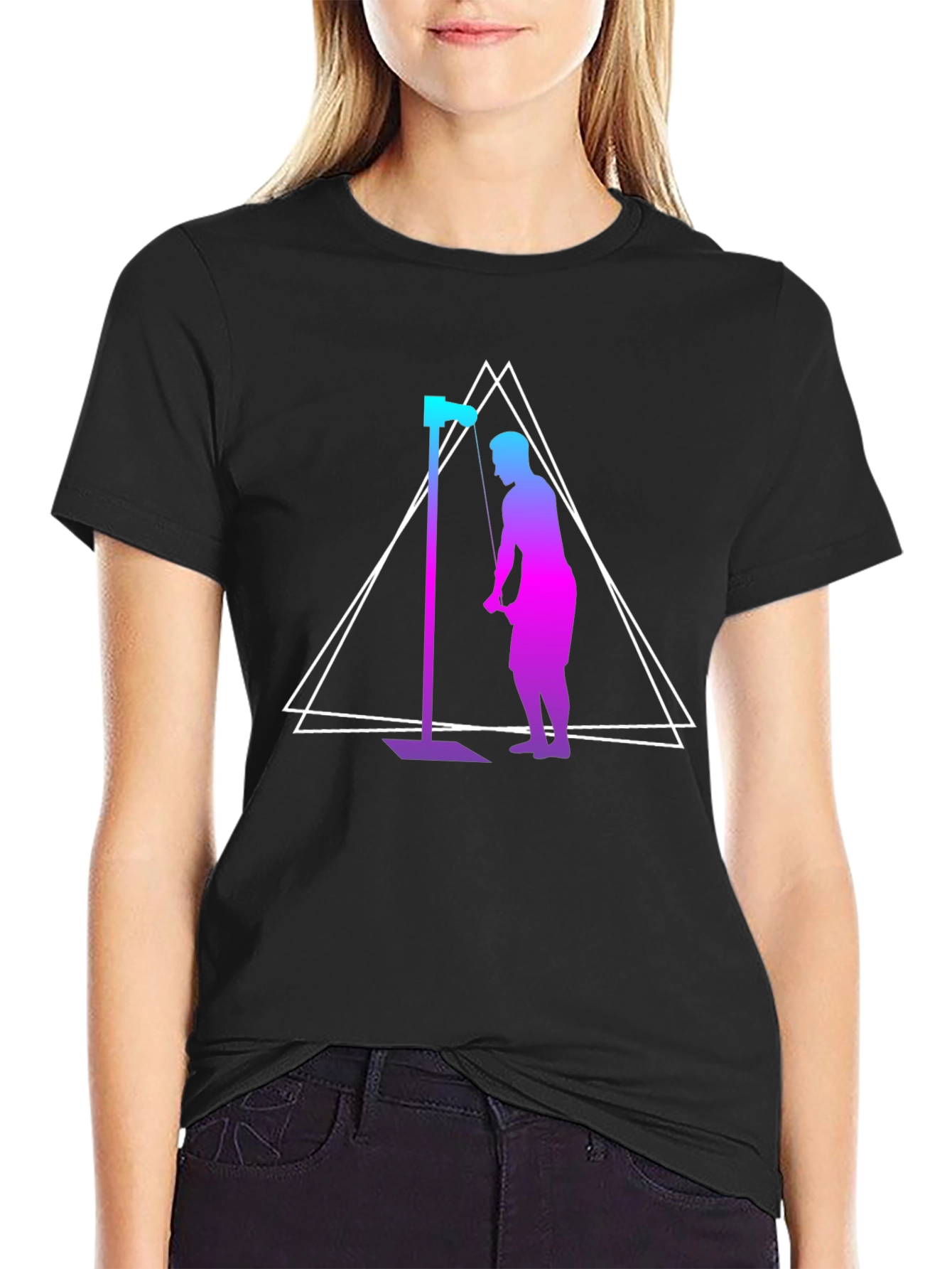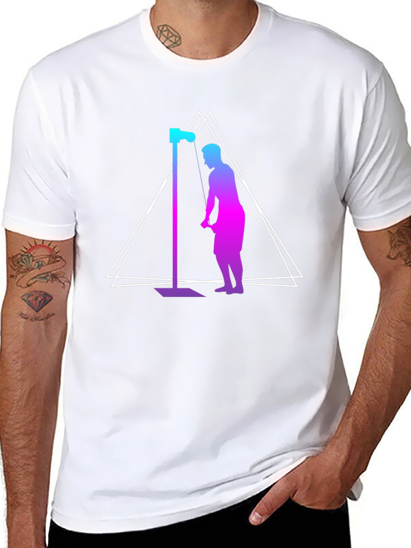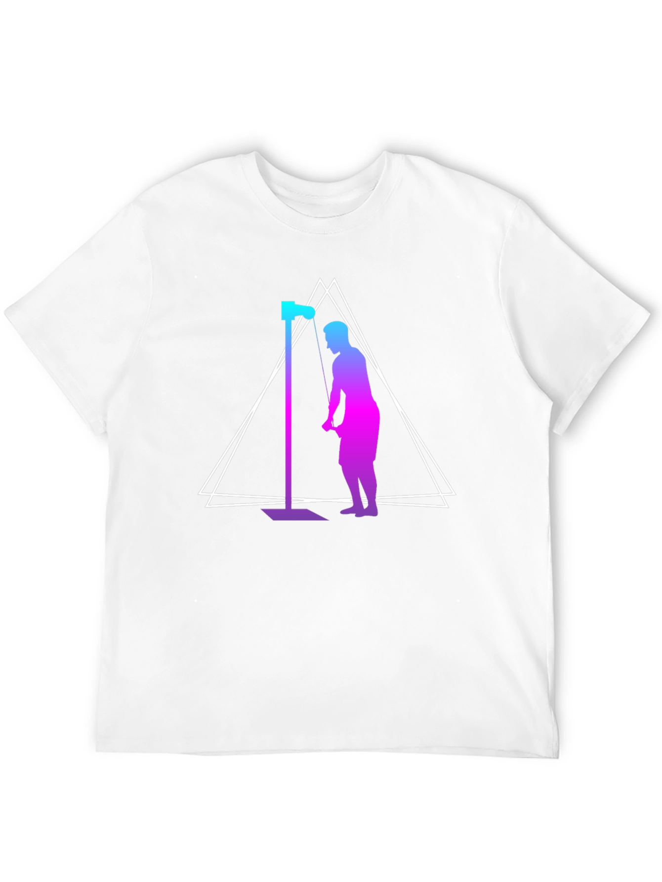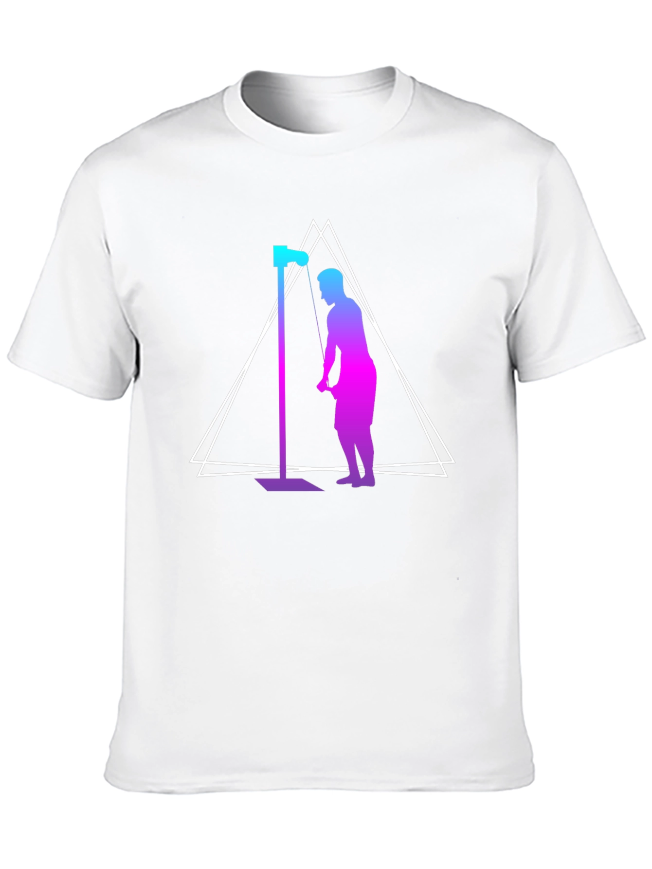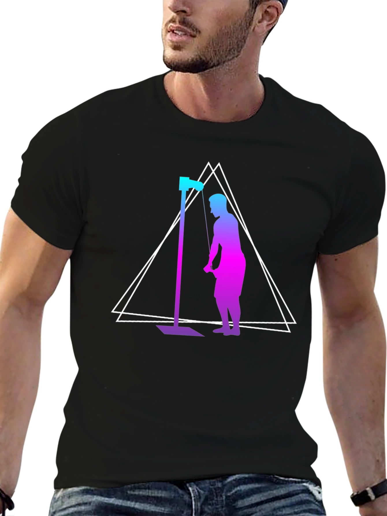 Elevate your workout style with this unique black tee. The eye-catching graphic features a stylized silhouette of a person doing a tricep pushdown exercise, set within a geometric triangle design. The vibrant color gradient adds a modern, energetic feel. Made from soft, breathable fabric, this t-shirt is perfect for the gym, casual wear, or layering under a jacket. Show off your passion for fitness and make a statement with this eye-catching design! Perfect for weightlifters, fitness enthusiasts, and anyone who loves a stylish, comfortable tee.