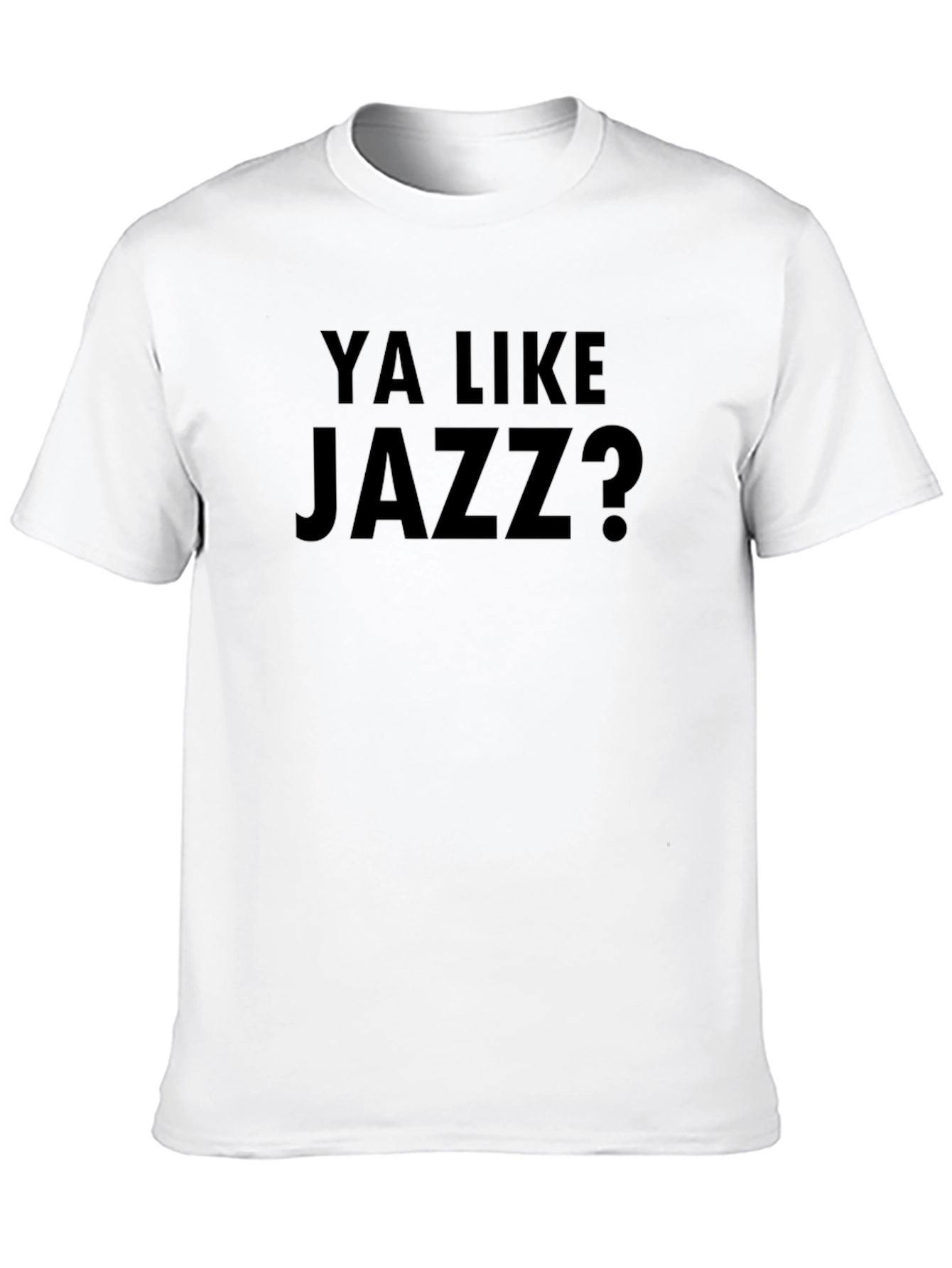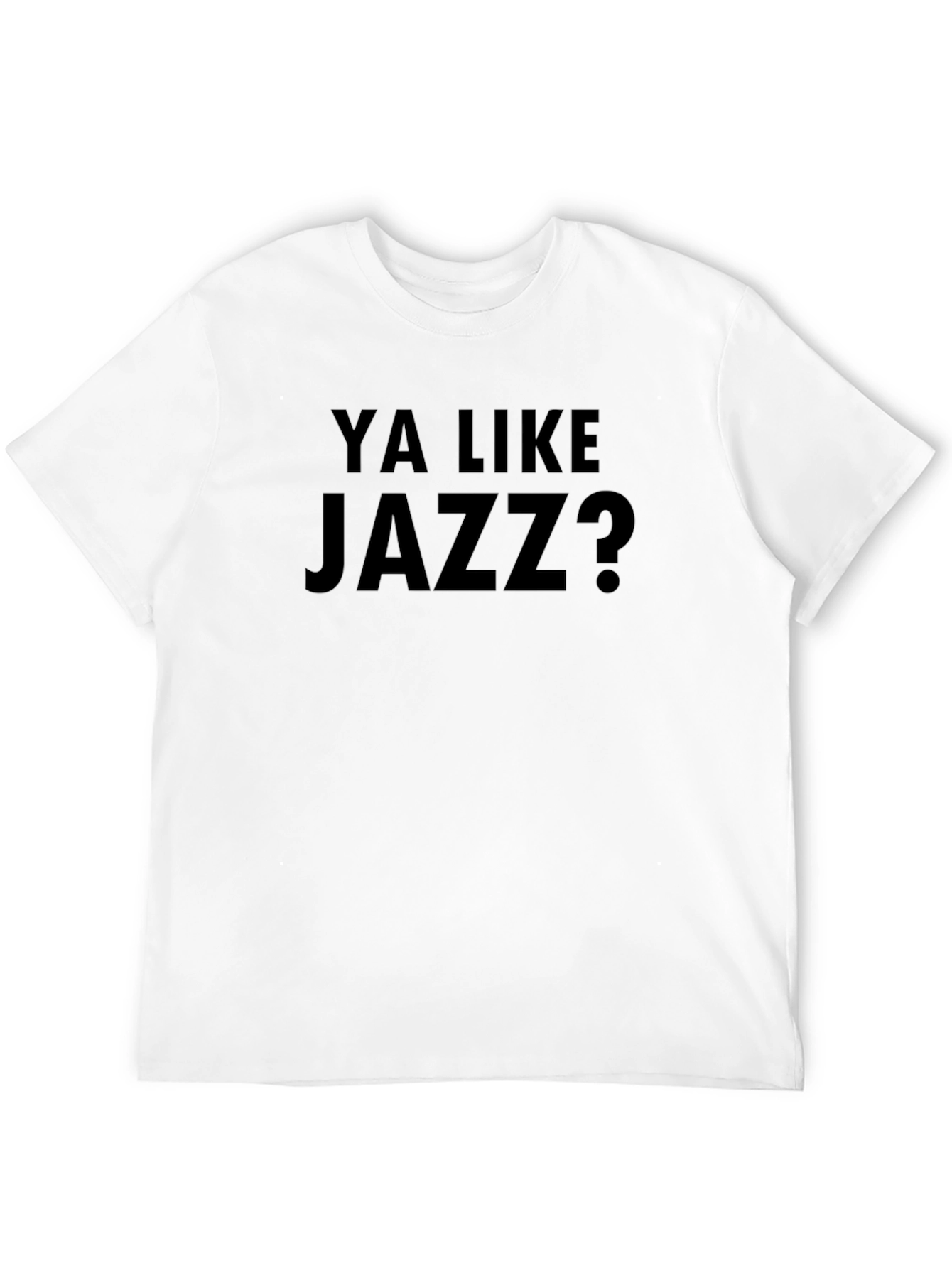 Show off your love for a classic movie with this black t-shirt. The shirt features the text "Ya Like Jazz?" printed in a bold, simple font on the front. Made from what appears to be a soft, breathable fabric, this tee offers a comfortable and casual fit, perfect for everyday wear. This tee is ideal for lounging at home, hitting the gym, or hanging out with friends. It is the perfect way to casually express your unique interests and showcase your love for a great movie.