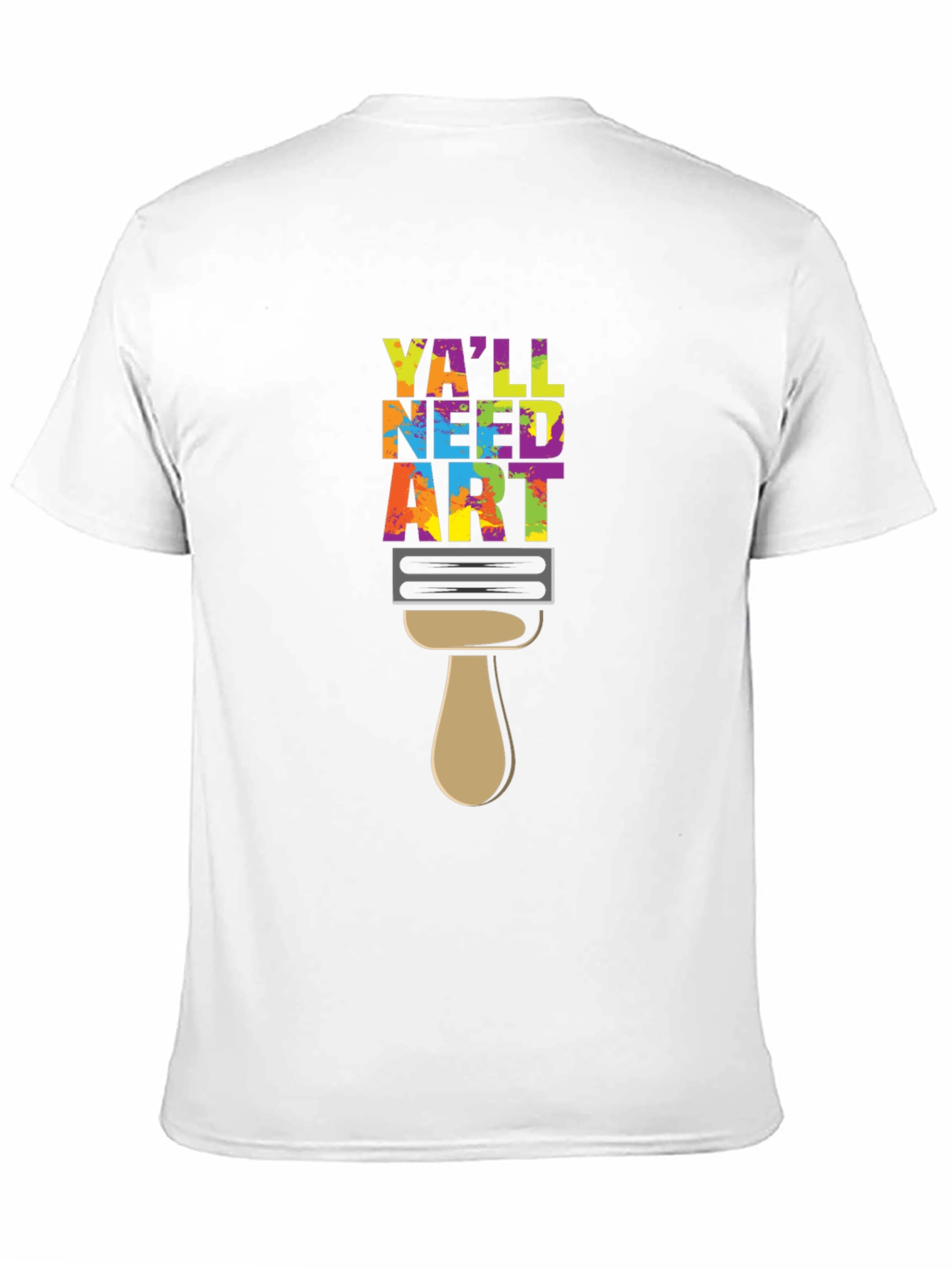 Express your artistic side with this eye-catching black t-shirt! Featuring a vibrant, colorful design that reads "Ya'll Need Art" above an illustration of a paintbrush. The bold text and playful paint splatter effect add a fun and creative touch. Made from a comfortable-looking fabric, this t-shirt is perfect for artists, art enthusiasts, or anyone who appreciates a unique and stylish statement piece. Wear it to art classes, casual outings, or simply to showcase your love for creativity. A perfect gift for the art lover in your life!