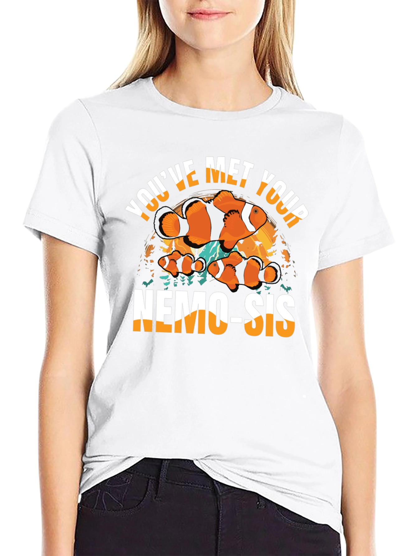 Dive into fun with this unique black t-shirt featuring a playful design of clownfish and the phrase "You've Met Your Nemo-Sis." The graphic is eye-catching with its vibrant orange and white colors. Made from a soft and comfortable fabric, this tee is perfect for casual wear, aquarium visits, or as a fun gift for fish enthusiasts and marine life lovers. Show off your love for the ocean with this stylish and comfortable t-shirt.